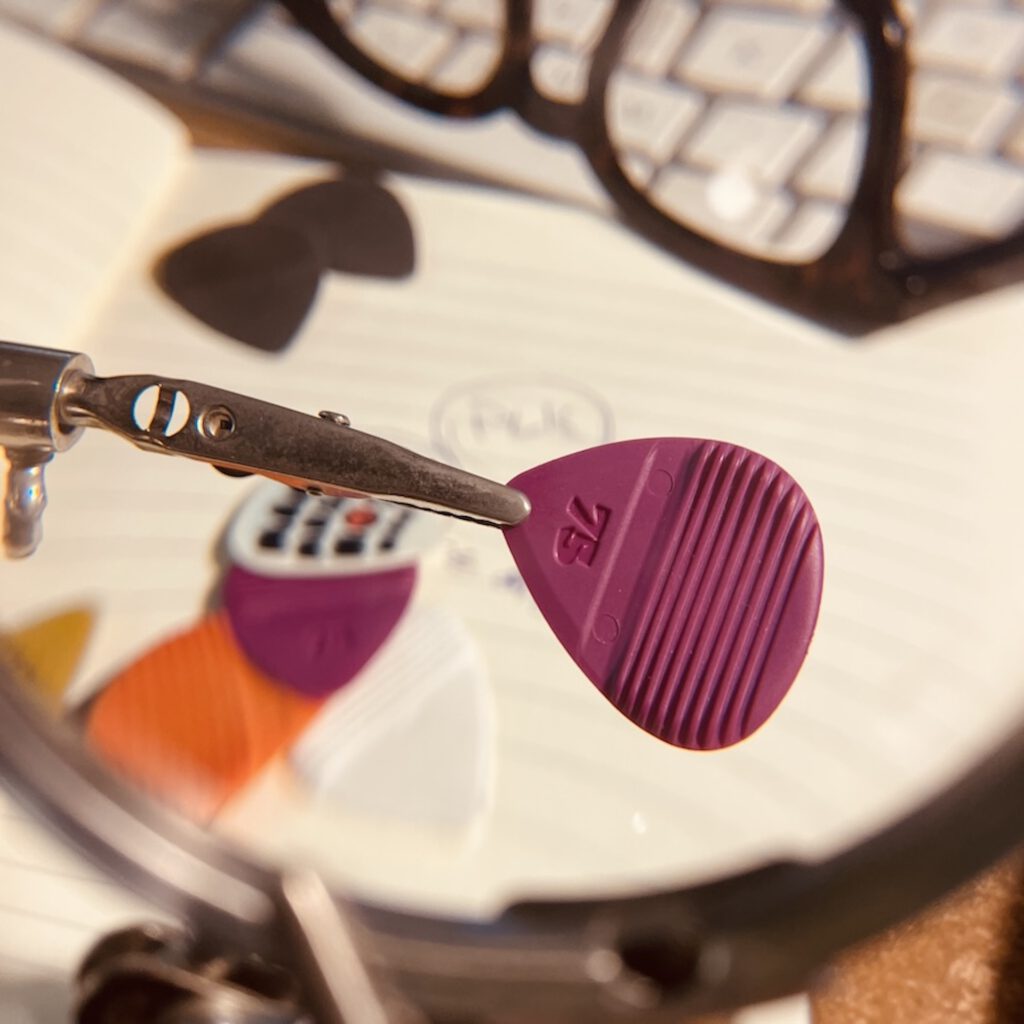 To serve the requirements of both acoustic and electric guitarists, the PLK-picks will initially be available in three gauges.